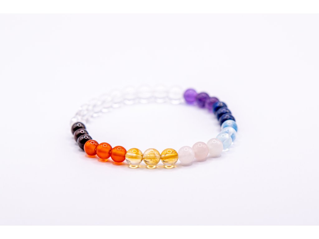 Barevné kameny symbolizují sedm čaker – energetických center těla a pomáhají je udržet v rovnováze. Onyx vnáší sílu, sebedůvěru a chrání před negativní energií. Společně tvoří náramek, který podporuje klid, soustředění a vnitřní stabilitu. Každý náramek je originál