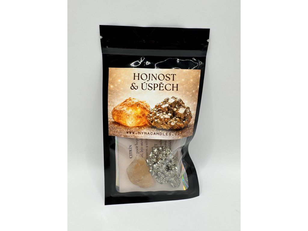 Citrín je tradičně spojován s energií, optimismem a otevřeností novým možnostem. Pyrit bývá symbolem stability, odhodlání a prosperity.