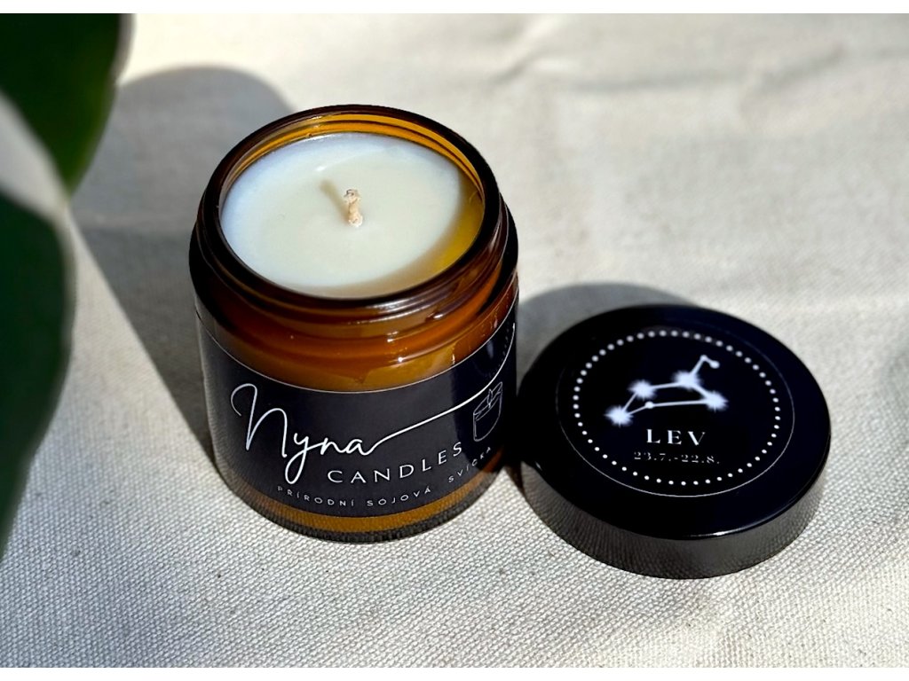 Lev - astrologická svíčka s esenciální směsí cedru, máty a šalvěje pro odvahu, sebevědomí a vnitřní klid.